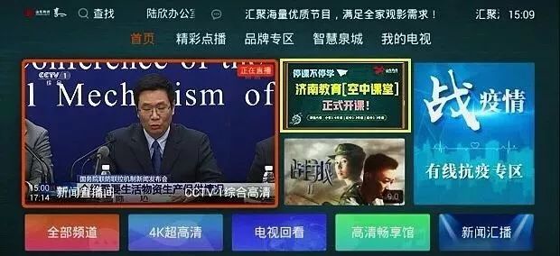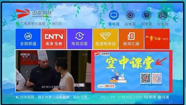 日前,由青岛市教育局组织的中小学“空中课堂”讲座已经在青岛有线平台上线,学生可以通过家里的电视机进行收看,非常方便。同时,青岛有线互动点播也会每天及时更新课程内容,保证孩子及时点播学习。