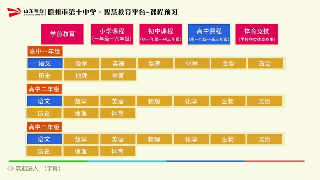 ●智能云机顶盒进入方式:有线电视菜单首页—济南教育空中课堂—选择年级。
