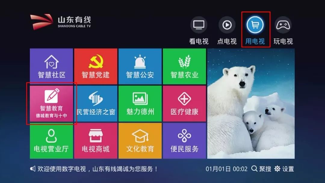 ●普通机顶盒进入方式:有线电视菜单首页—点电视—济南教育空中课堂—选择年级。