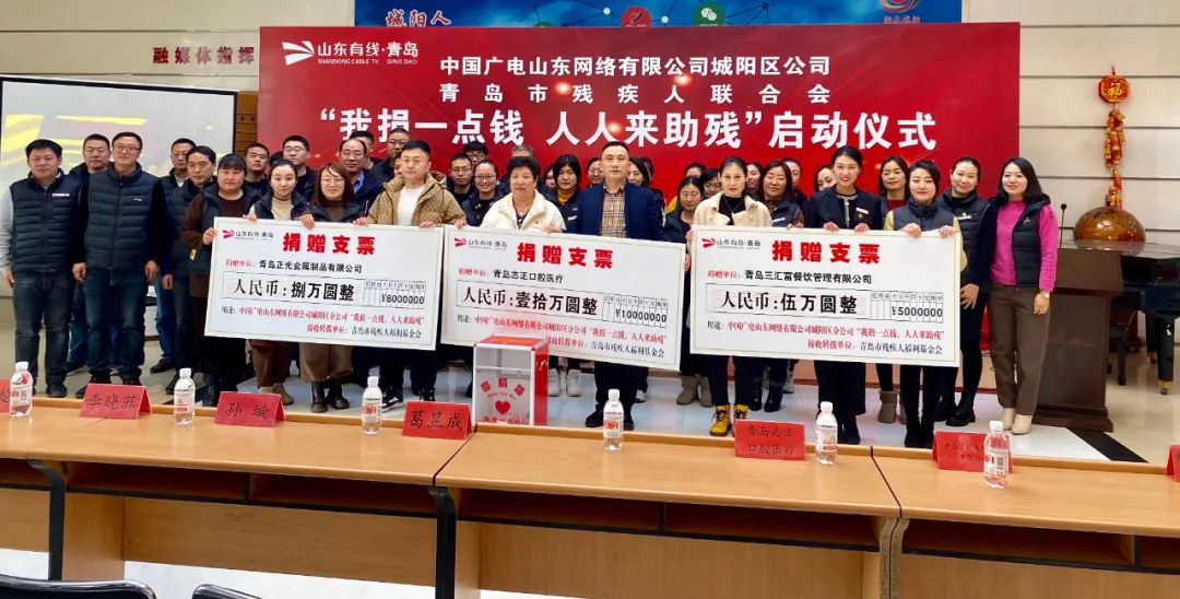 今年,青岛分公司与青岛市残联联合开展了多项公益募捐活动,活动以爱心企业和普通民众为募捐主体,通过青岛市残联官方提供的对公账户及活动二维码进行专项捐助,募捐资金全部用于为残疾人办理“享TV”专享业务。1月11日,“我捐一点钱,人人来助残”活动在青岛城阳分公司启动,得到了社会各界人士的广泛关注和全体员工的大力支持。活动启动当日,城阳分公司共募集企业捐款23万余元、员工捐款1.7万余元,活动取得了圆满成功。2月22日,青岛胶州分公司在胶州里岔镇韩家庄村启动“有线相伴·让爱常在”公益活动。启动仪式上,里岔镇政府为胶州分公司颁发了扶贫助残“爱心企业”奖牌。仪式结束后,胶州分公司第一时间组织安装工作队为全镇200余户一级残疾人家庭免费安装并开通了有线电视服务……截至3月末,青岛分公司通过开展公益募捐活动已募捐善款共计177万元,累计为辖区残疾人办理“享TV”三年套餐4548笔、宽带业务200余笔。活动取得显著成效,受到社会各界广泛好评。