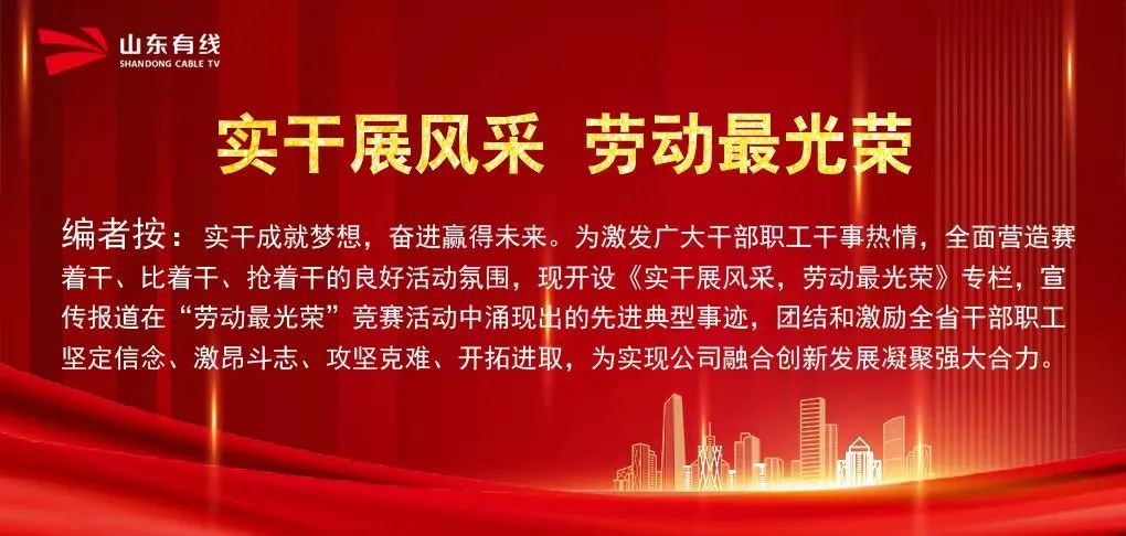 劳动创造幸福,实干成就伟业。这个不同以往的“五一”小长假,中国sa36沙龙国际官方有限公司(山东有线)坚持统筹疫情防控和事业发展,全省有线人时不我待、只争朝夕,积极投身服务基层一线,在各自岗位上描绘着中国sa36沙龙国际官方有限公司的服务底色,用坚守和行动诠释和演绎着“劳动最光荣”。