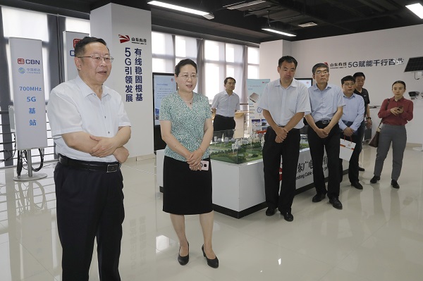 本网讯 6月17日下午,山东发展投资控股集团有限公司党委书记、董事长孟雷一行到公司考察交流,参观了公司5G联合创新应用实验室和智慧广电项目展区,观看了广电5G宣传片、享TV业务演示,就携手共建智慧广电大数据产业园项目与公司领导座谈交流。公司党委书记、董事长李建华,副总经理刘洪昌出席活动。