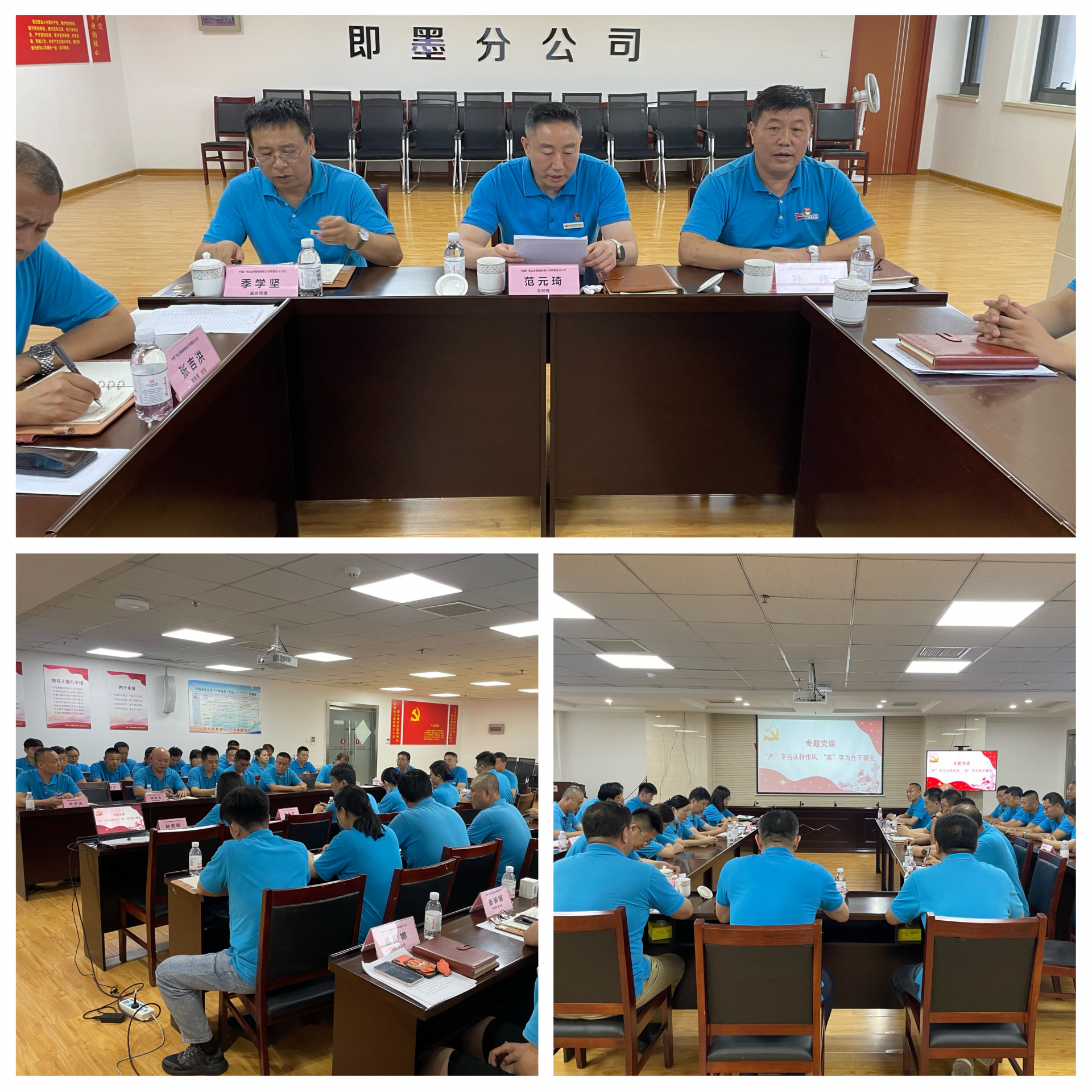 本网讯 为进一步提高公司党员干部政治站位,强化责任担当,7月6日,即墨区分公司党总支书记、经理范元琦同志以《“严”字当头转作风 “实”字为先干事业》为题,为全体党员干部讲授专题党课。